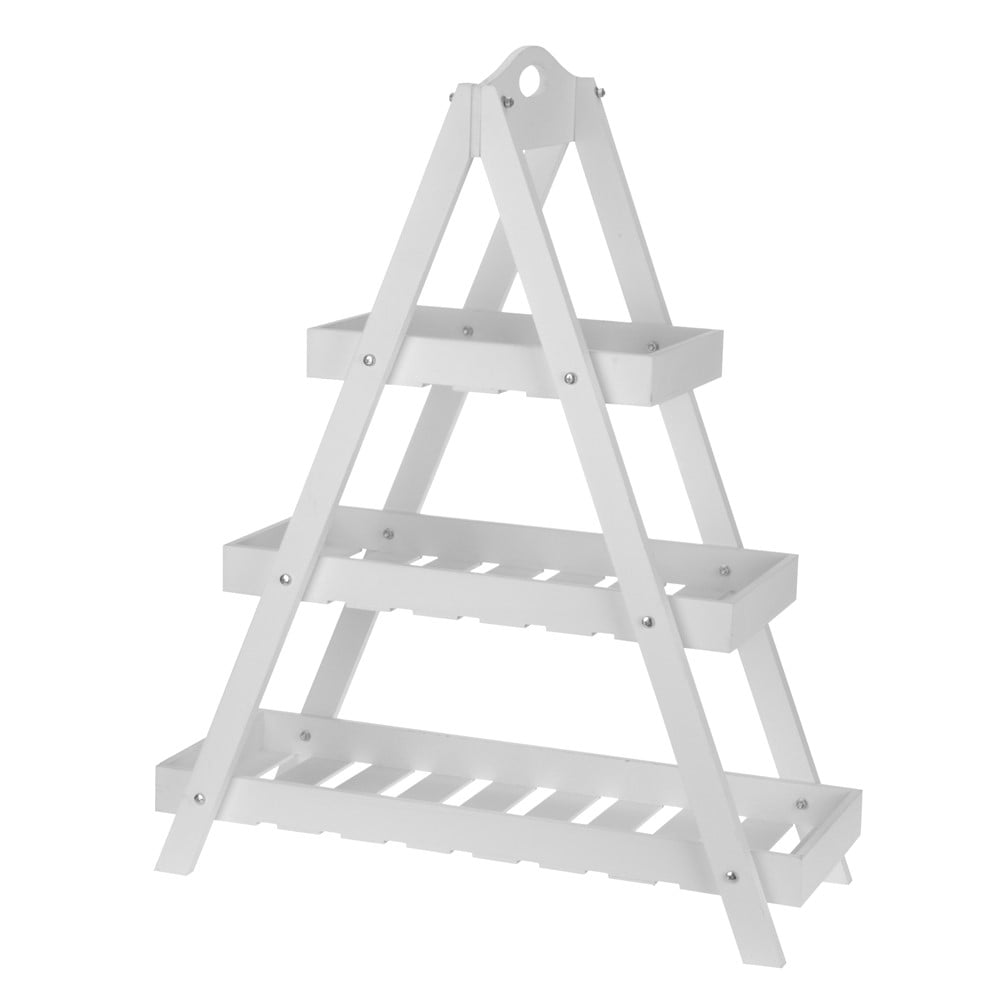 Stairs for flowers with 3 wooden floors in white color suitable for any potted plant. An interesting design fits perfectly into balcony or terrace arrangements. Also used in gardens, restaurants. In order for the house to absorb the harmony of the flowers, it is necessary to place them on this fantastic scale in white, where each flower you place in it will look beautiful and give your room a glow.