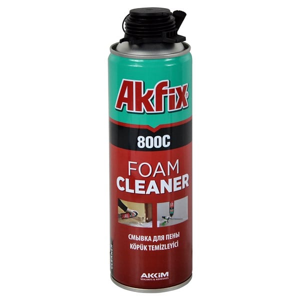 800C FOAM CLEANER. DESCRIPTION Akfix 800C removes fresh PU foam and cleans the PU foam gun adapter after the application. Cleans surfaces, clothes, window&door frames and prevents the foam cure in the gun adapter. PROPERTIES: Powerful solvent based aerosol cleaner for removing uncured PU foam ( straw and gun adapter foam ) • Designed especially for cleaning the gun adapter of foam. • Cleaner has a spray activator for removing the foam from the gun adapter. • It can be used in all positions. • Propellant gas is not harmful to the ozone layer. APPLICATIONS • Cleaning of the gun adapter.• Cleaning of the valves of the PU Foam Aerosol. • Removal of uncured foam. Consistency: Liquid, Appearance: Clear, Specific gravity: 0,85g/cm3
