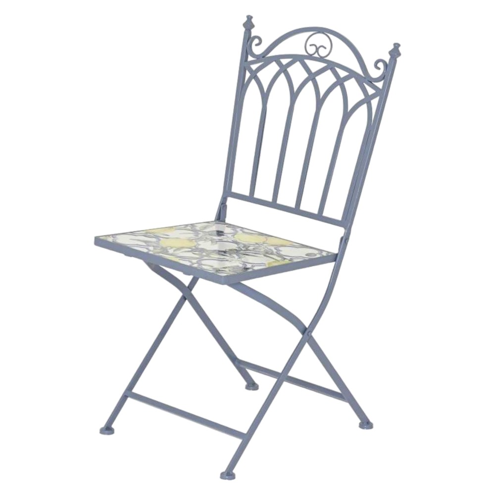 Constructed from a combination of metal and plate, this chair is durable for outdoor use. The shade of blue with lemon decor gives it a fresh and attractive look, making it stand out in any environment.