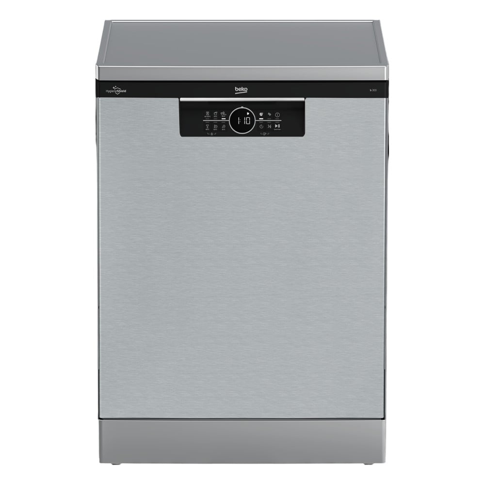 Beko BDFN26530X. Installation type: Freestanding, Product size: Full size (60 cm), Door colour: Stainless steel. Number of place settings: 15, Noise emission class: B, Noise level: 44 dB. Energy efficiency class: D, Water consumption per wash cycle: 9.9 L, Energy consumption per 100 cycles: 86 kWh. Width: 598 mm, Depth: 600 mm, Height: 850 mm. Beko technologies (dishwasher): Glass care, HygieneIntense, Quick & Shine®, SteamGloss®