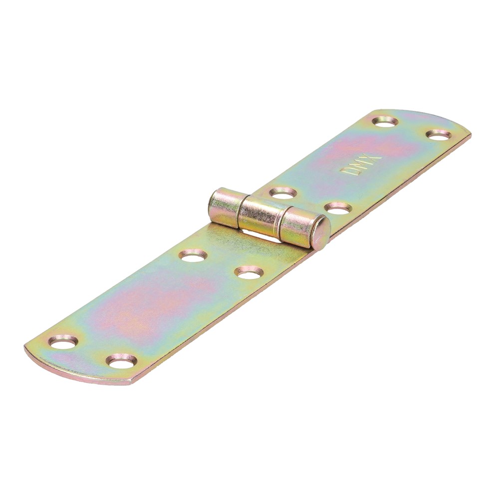 French hinge, made of galvanized zinc material, with dimensions of 20x3.3x0.25 cm, in golden color. The constituent material is resistant to use, heavy weights, rust or abrasion. It can be used for mounting windows, mounting the doors of countertops or shelves, mounting interior doors or for other uses.