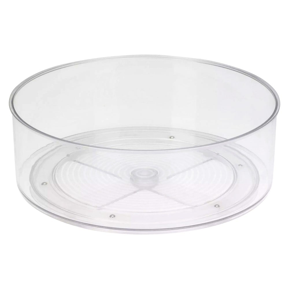 This rotating fridge organizer is a practical way to keep your fridge organized. Thanks to the rotating design, the refrigerator organizer allows easy access to stored products, eliminating the problem of mess in the refrigerator. Made of PET plastic, the organizer is resistant to damage and ensures long-lasting use, making it an ideal solution for everyday use. With dimensions of 23 x 23 x 8.5 cm, the organizer fits perfectly into most refrigerators, allowing efficient use of space.The product is suitable for contact with food, which ensures the safety of stored food products.