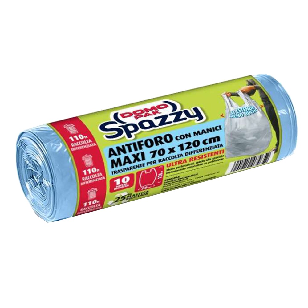 Thanks to the special expandable formulation in polyethylene, it is ULTRA RESISTANT and less prone to cracks and splits. Easy to close and carry thanks to the practical incorporated handles. You can choose the scent you like best choosing from lavender, green apple, alpine breeze and orange. Domopak Spazzy Antiforo Profumato is also ecological. Reduces environmental impact because it is produced with 25% post-consumer recycled plastic and is in turn recyclable
