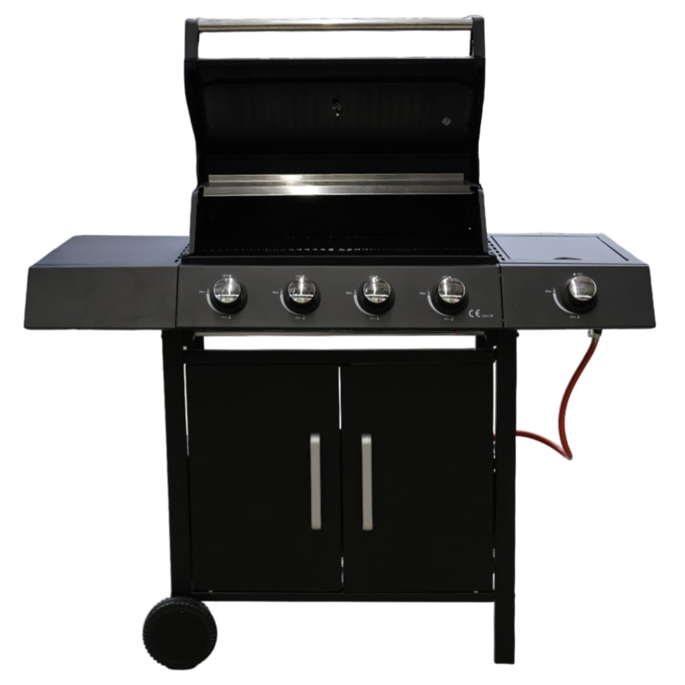 Gas barbecue, 4+1 burner, steel, 120x53x110 cm, black, 1 piece