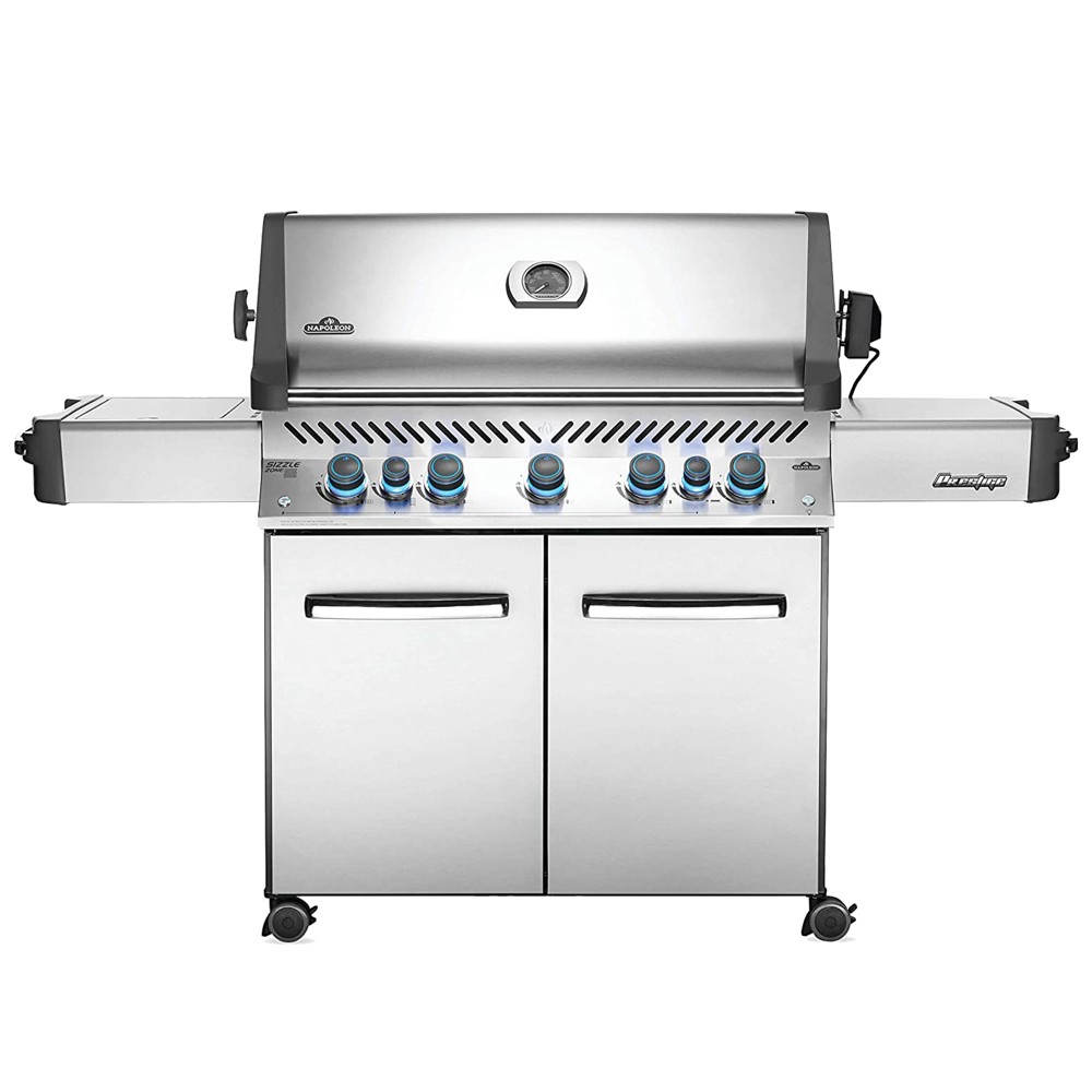 The Napoleon Prestige 665 Stainless Steel Gas Barbecue with Side Burner and Back Burner is a durable grill. With five main burners, a rear rotisserie burner and a tall top lid, this grill has everything you need to create perfect meals The side shelves offer plenty of preparation space, including a built-in bottle opener, a lid and a stylish new control panel.