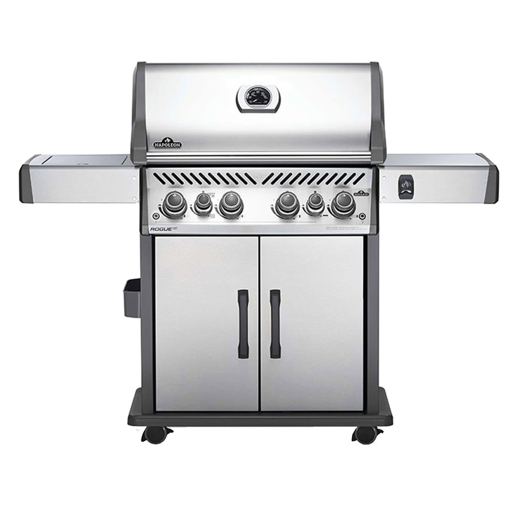 The Napoleon Rogue SE 525 SIB Stainless Steel Gas Barbecue with Infrared Side Burner and Back Burner is a durable grill. With four main burners, a rear rotisserie burner and a high top lid, this grill has everything you need to create perfect meals. The side shelves offer plenty of prep space, including a built-in bottle opener, a lid and a sleek new control panel.