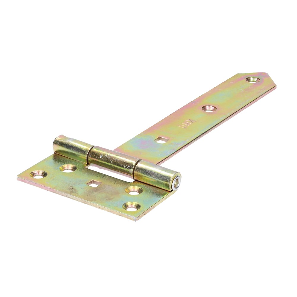 Gate hinge, made of galvanized zinc material, with dimensions of 20x4.5x9x0.3 cm, in golden color. The constituent material is resistant to use, heavy weights, rust or abrasion. It can be used for mounting the outdoor gates of the fences and for other uses.