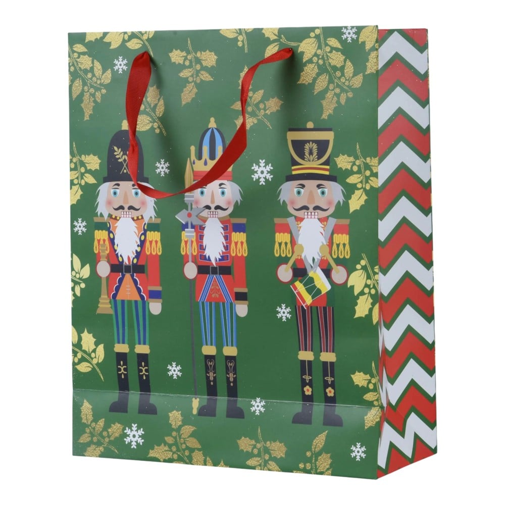 Gift bag with Christmas motifs, green color, L8xW18xH24 cm