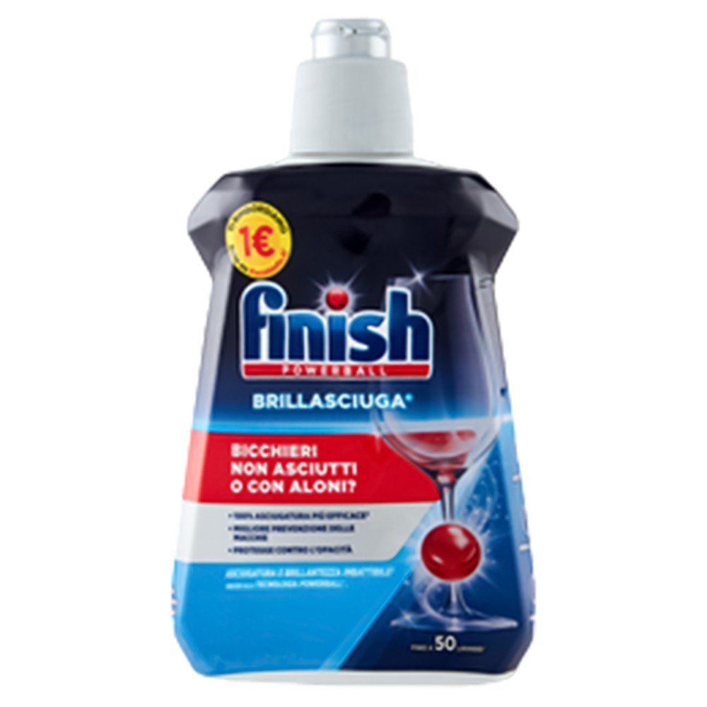 New Finish Rinse Aid 5X Power Actions was developed to guarantee dishes are always shiny and dry. It is part of the washing additives and is used together with the detergent to act specifically only during the final rinsing phase, eliminating stains, for a perfect washing result. Always combine it with your favorite dishwashing detergent. Its use is very simple: just fill the special compartment of the rinse aid container. Finish Rinse aid will be released automatically, at the appropriate time during the wash cycle, every time your dishwasher is turned on.