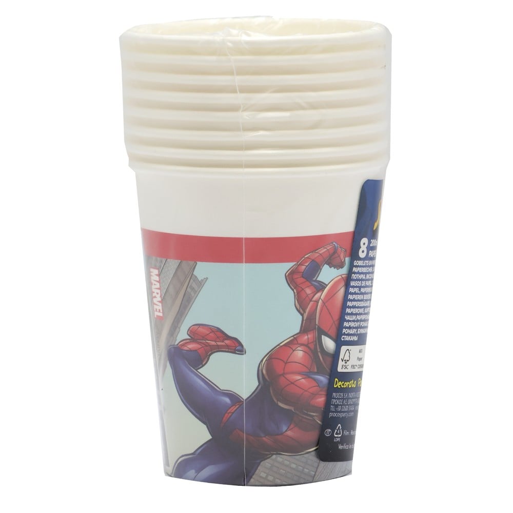 Glass, Spiderman, is a set of special glasses with the theme of the character Spiderman. The cups are made of cardboard material and have a capacity of 200 ml. Set includes 8 Spiderman themed mugs. This product is suitable for use at Spiderman themed birthday parties, Spiderman themed parties, or other festive events where you want to celebrate a Spiderman themed birthday or event.