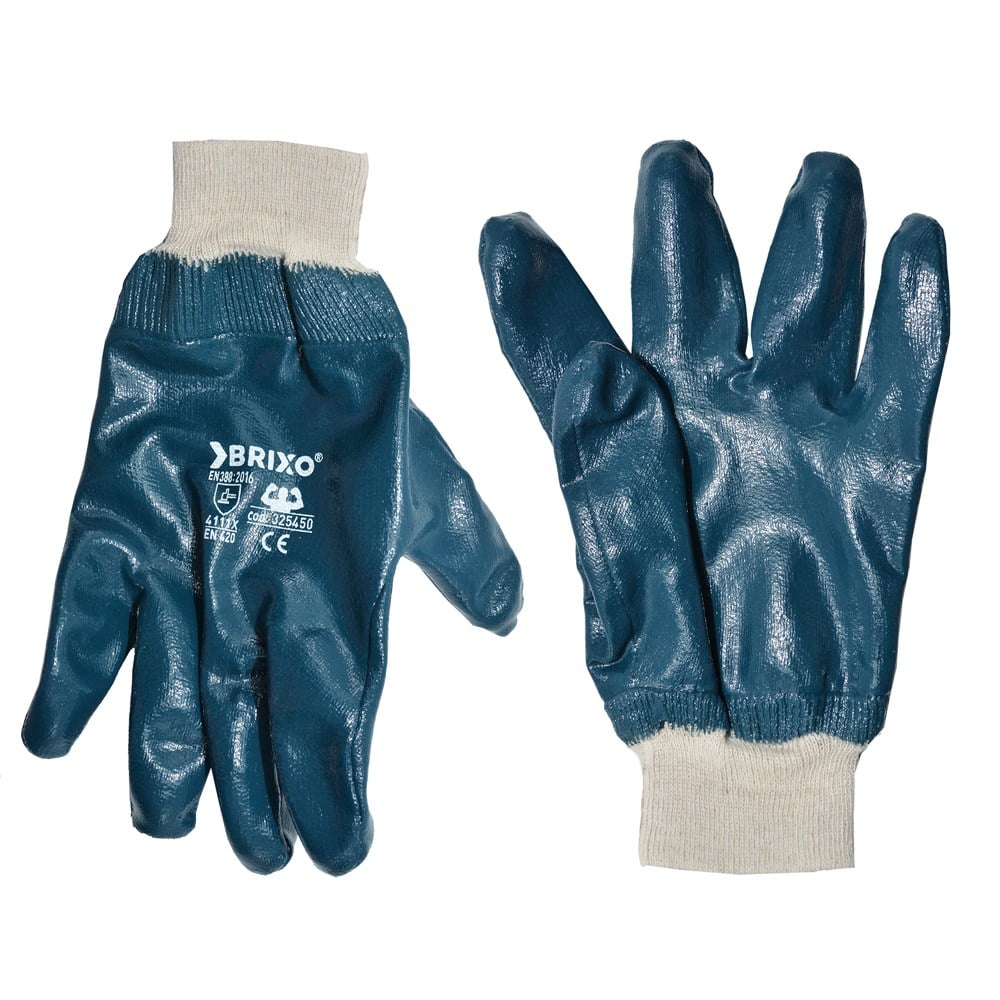 "Jersey cotton back, NBR palm heavy coating with full cuff.