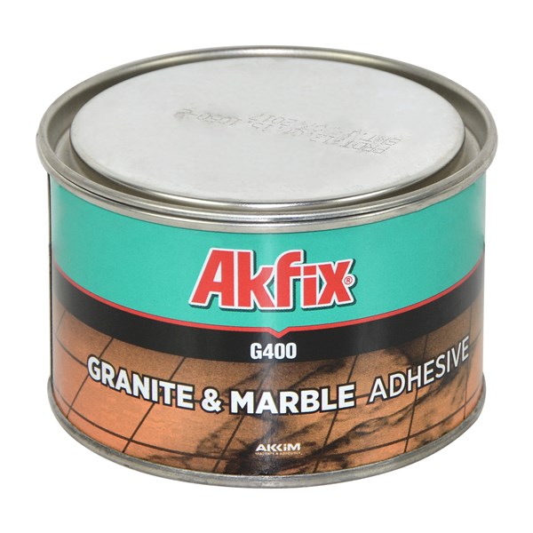 1–DESCRIPTION: Akfix G400 is a two component marble and natural stone adhesive based on polyester resin. 2–PROPERTIES: • Resistant to UV. • Resistant to alkalis and diluted acid solutions. Temperature resistance of cured adhesive is between -10 °C and +100°C. • Bonded surfaces are ready to be used after 2 hours. • No color change, cracking or shrinkage during hardening period. 3 - APPLICATIONS:• Bonding of natural stones like marble, travertine etc. • Bonding of concrete, granite, wood surfaces. 4 -INSTRUCTIONS: • The surfaces must be clean and free from dust and grease. • Mix 100 gr of adhesive with 1-2 gr of hardener until a homogeneous mixture is obtained. • Bring surfaces together within 5 minutes. • Keep the assembled parts from moving during cure.