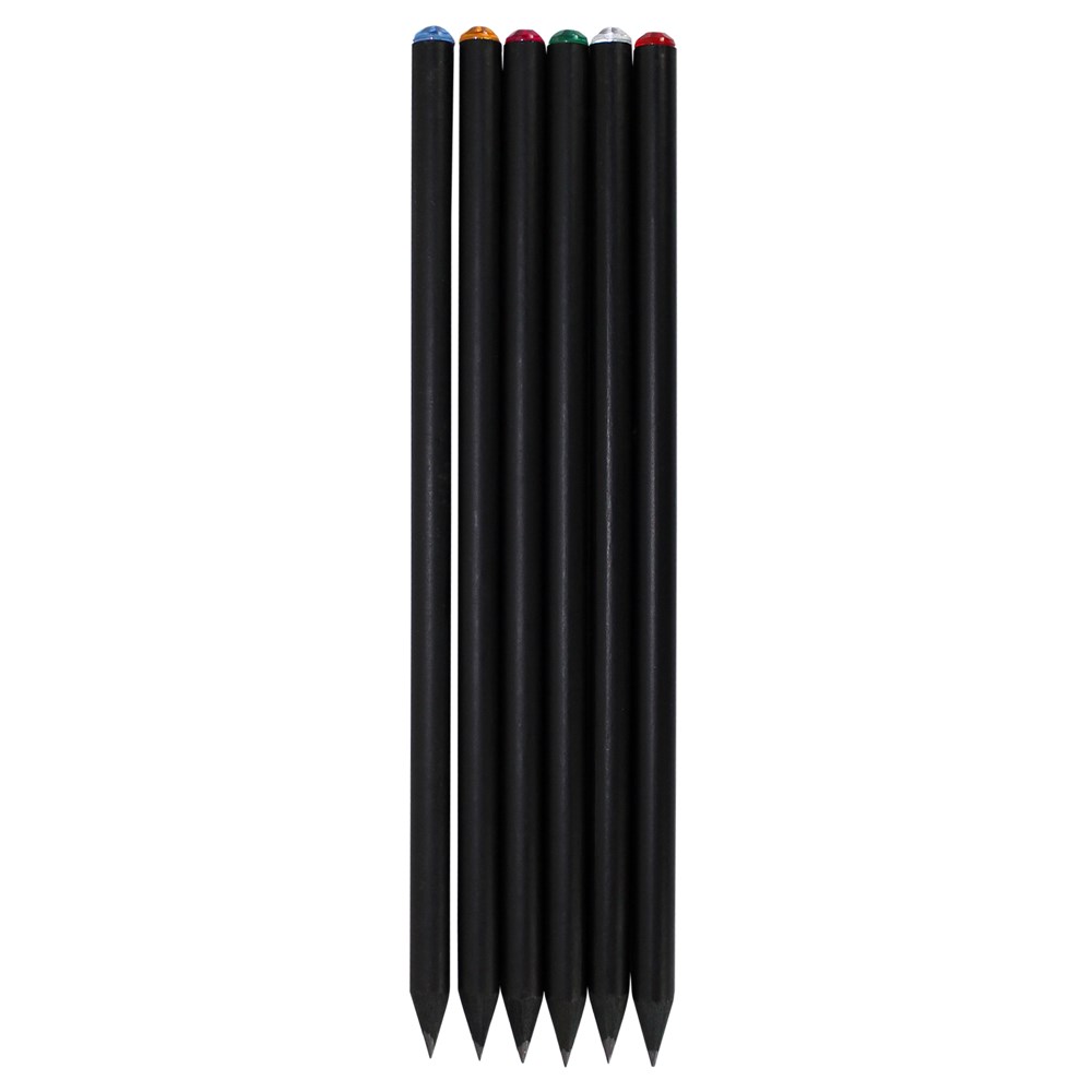 Graphite pencils, made of durable wood material, with a line width of 1 mm and HB line sharpness and hardness, in black color. The pencils are equipped with decorative jewels in different colors. The pencils are used to write, take notes, draw and sketch. This product has an ergonomic design, it is practical and it is suitable for daily use.