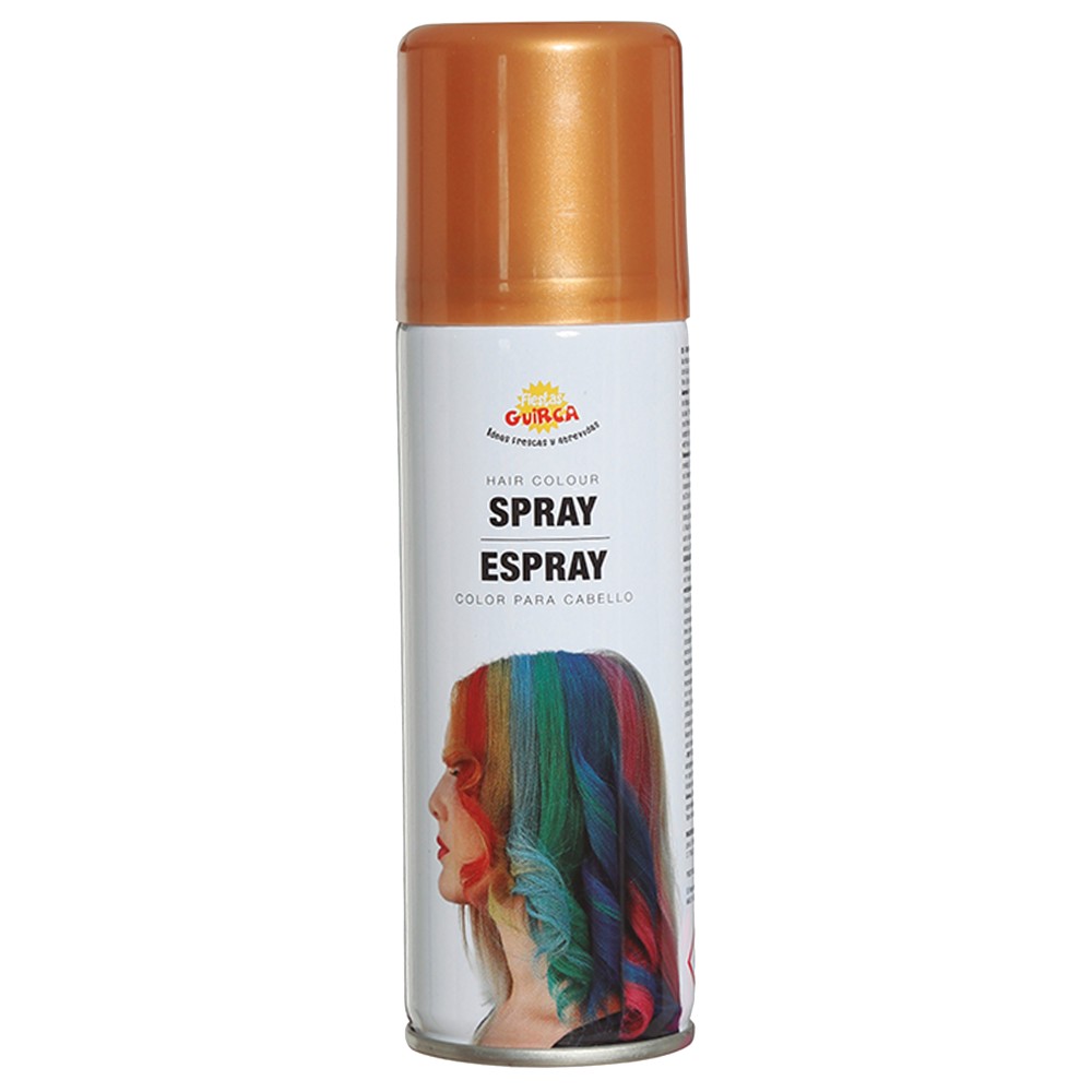 Hair coloring spray, which is used to color hair during Halloween or carnival holidays. The spray has no harmful contents, does not cause irritation and can be cleaned easily.
