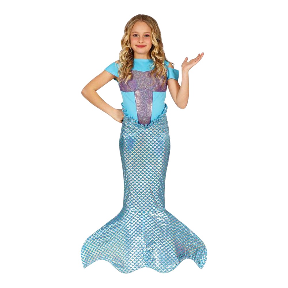 Mermaid costume for children, made of polyester material, mixed color. The component material is soft to the touch and does not cause skin irritation. This product is suitable for use by children aged 7-9 years with a height of 125 cm to 135 cm, bust 67-70 cm, waist 59-60 cm, hips 67-72 cm.