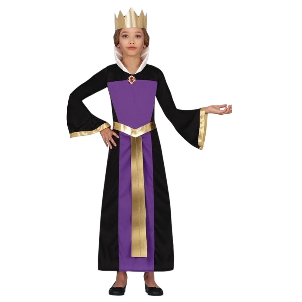 Regina Viola costume for children, made of polyester material, mixed color. The component material is soft to the touch and does not cause skin irritation. This product is suitable for use by children aged 7-9 years with a height of 125 cm to 135 cm, bust 67-70 cm, waist 59-60 cm, hips 67-72 cm.
