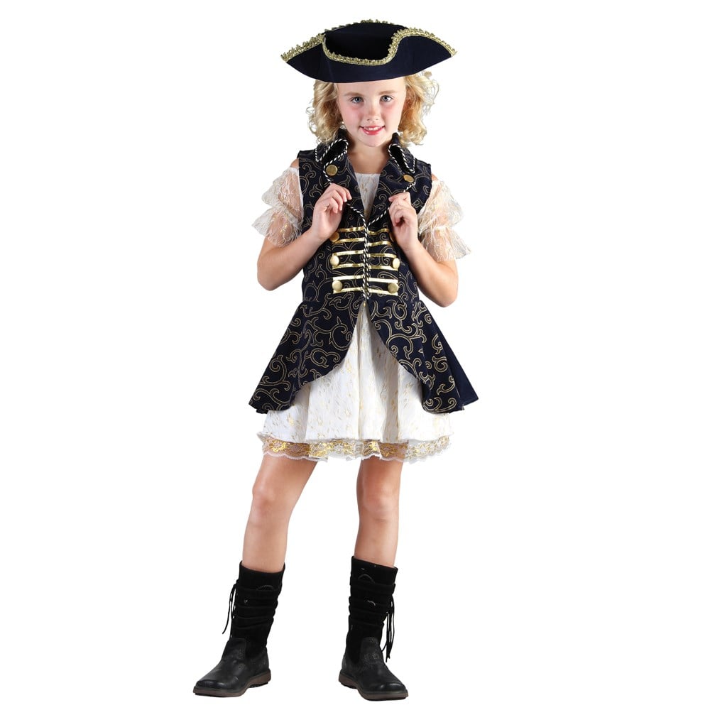 Ehhhhh. She is the cute pirate on the see this halloween in this adorable costume. This costumes comes with a black jacket and white dress. She'll be more dangerous than Anne Bonny herself this Halloween. If she loves pirates and famous pirate movies, she'll love wearing this costume. Smal size(110-120 cm), Medium (120-130 cm), large 130-140cm)