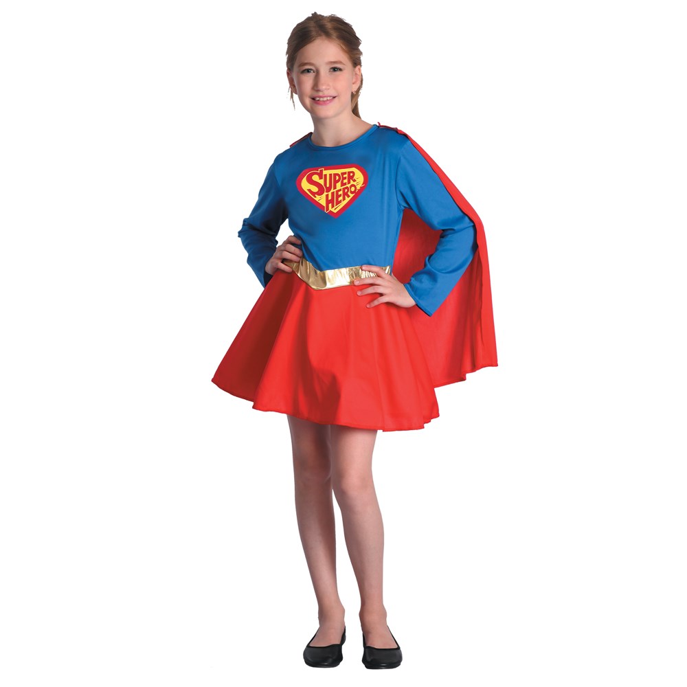 Be careful the super girl is coming.The children supergirl costume includes a red and blue dress with the Supergirl logo on the front and an attached cape. The costume also features a gold belt. If your girl loves the super powers and action film of superhero she'll be delighted when you give her this costume. with this hereos cstumes she'll look super cute.