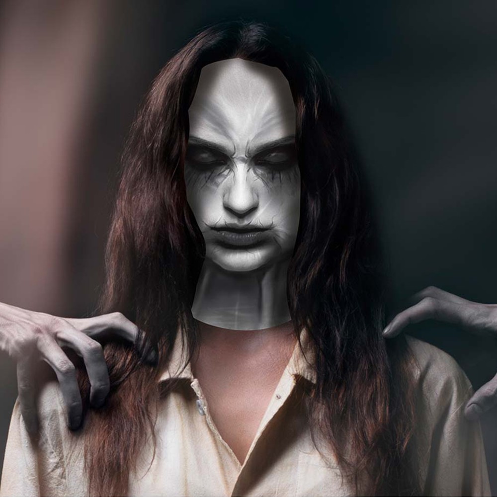 This mask represents a scary image of a terrible girl, and comes with a mix of different colors to make you appear more terrifying. It is a mask that covers your face and gives it an authentic Halloween look. Use this mask to create a spooky and mysterious atmosphere at your Halloween party and spread fear among your guests.