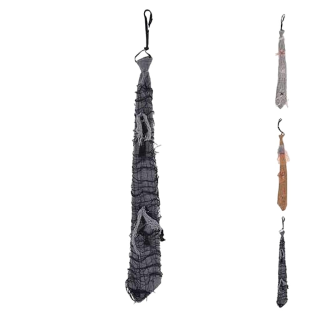 Tie made of textile material, size 62x10x2 cm. It comes in mixed colors, and is used as a decorative accessory in Halloween costumes.