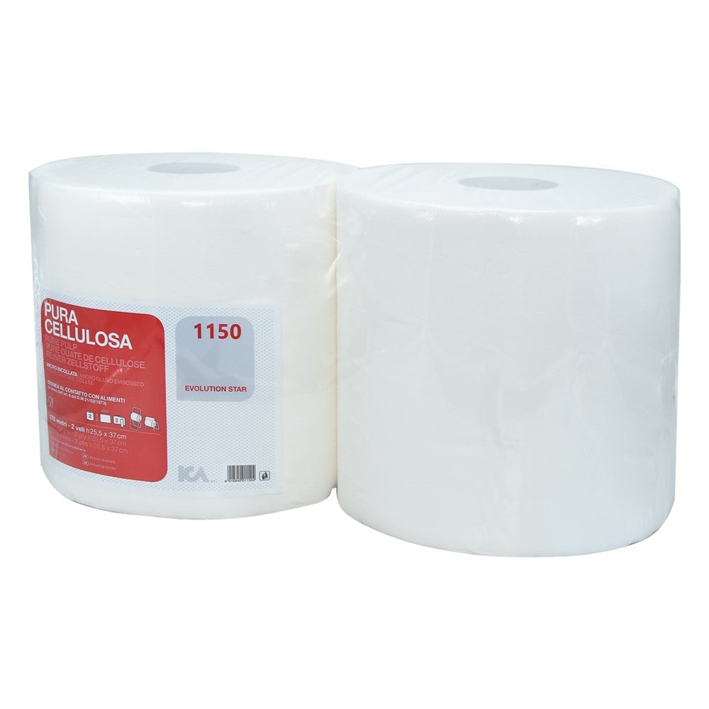 Industrial rolls 100% cellulose, made from 2 sheets - 22 gsm paper. This product is