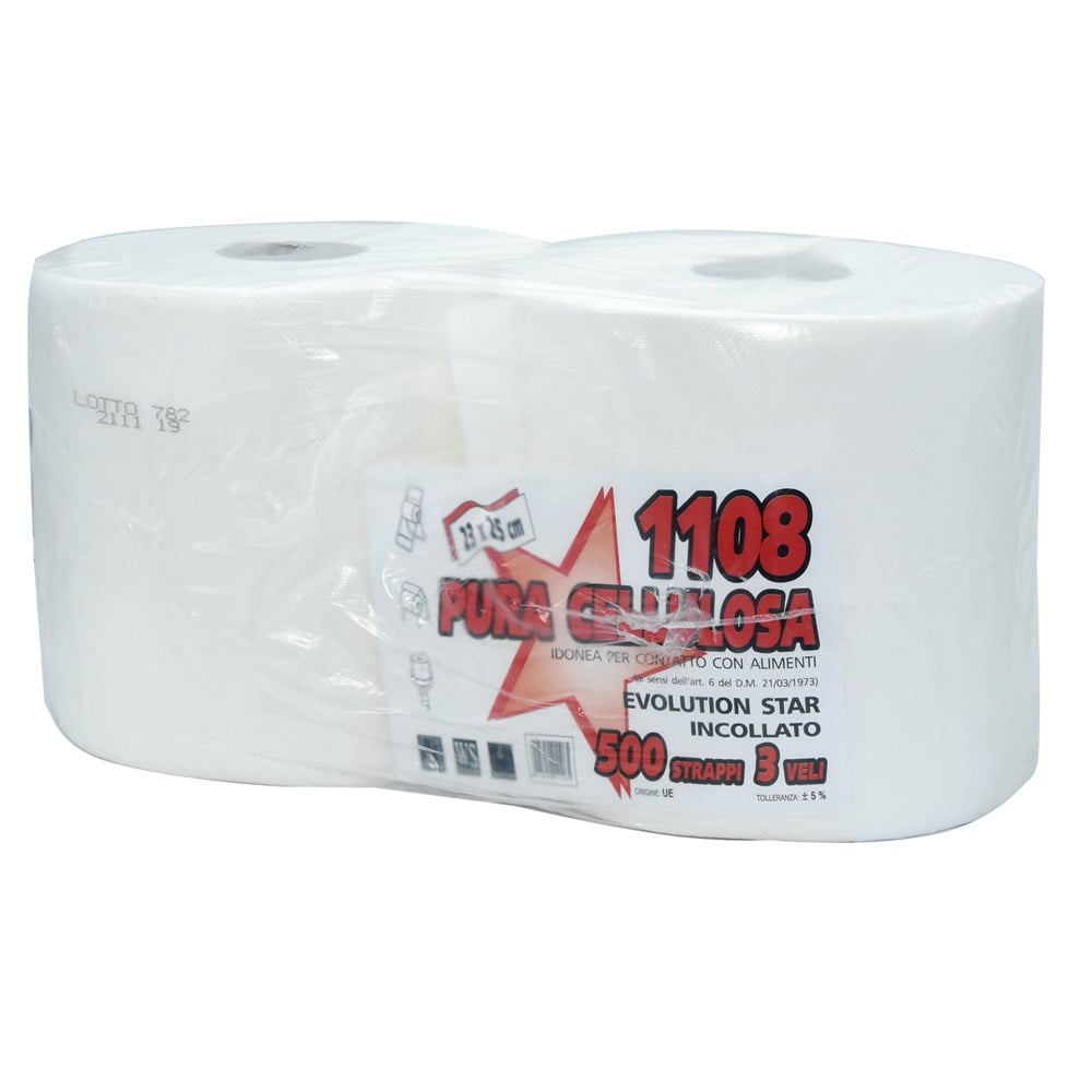 Industrial rolls made from clean, wood-based, renewable and biodegradable raw materials. 3 sheets - 18 gsm paper. This product is extremely absorbent and strong thanks to micro-adhesion. 3 sheets, 23x25 cm, 500 sheets, 125 m, 2 rollers,