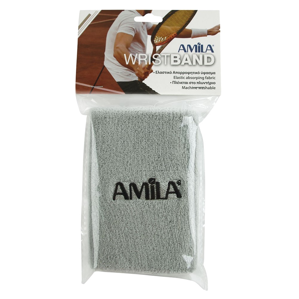 High quality wristbands for sweat absorption made of cotton, large size 11 cm. AMILA logo stitched on machine washable product. Sold as a pair!