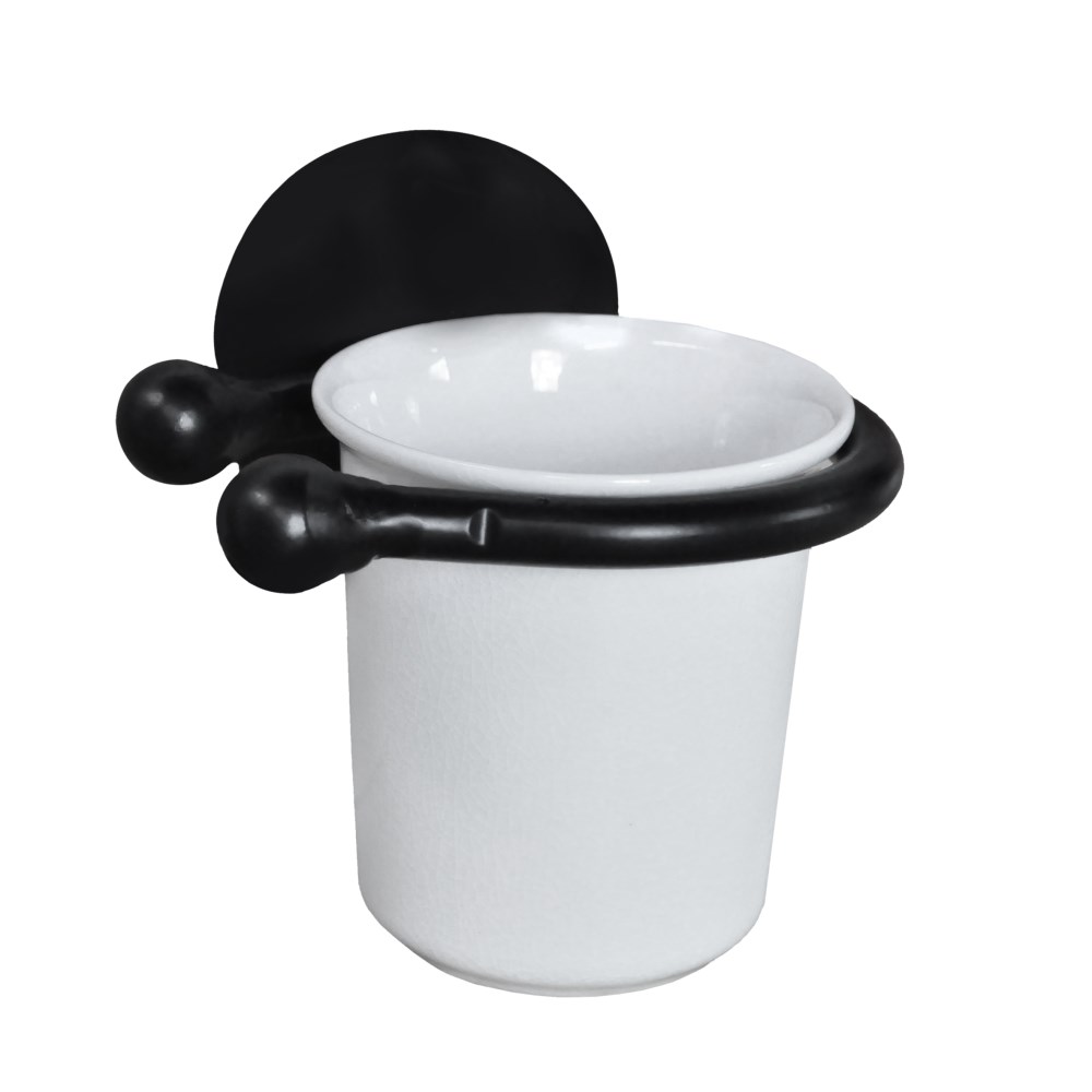 Handmade wrought iron and ceramic toothbrush holder
