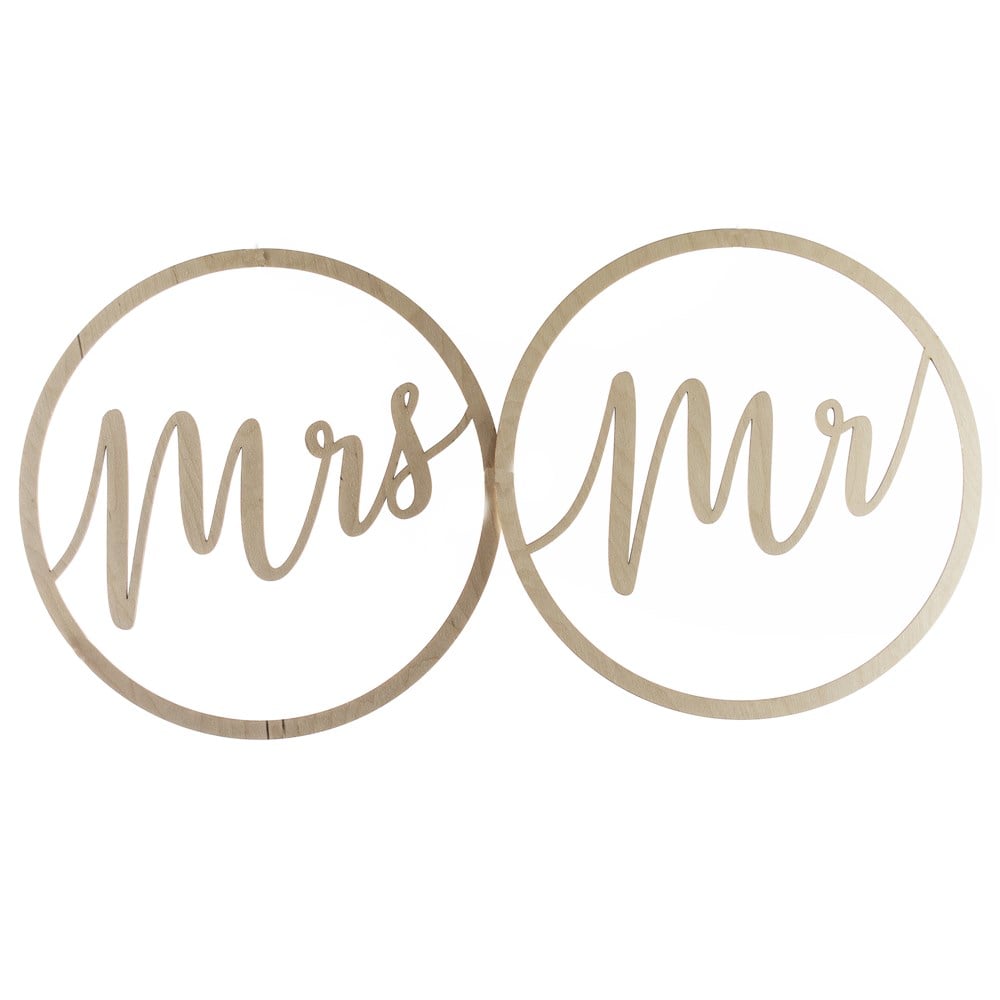 Hanging wooden decorator, contains the inscription Mr. and the inscription Mrs. With this hanging decoration your wedding will be special.