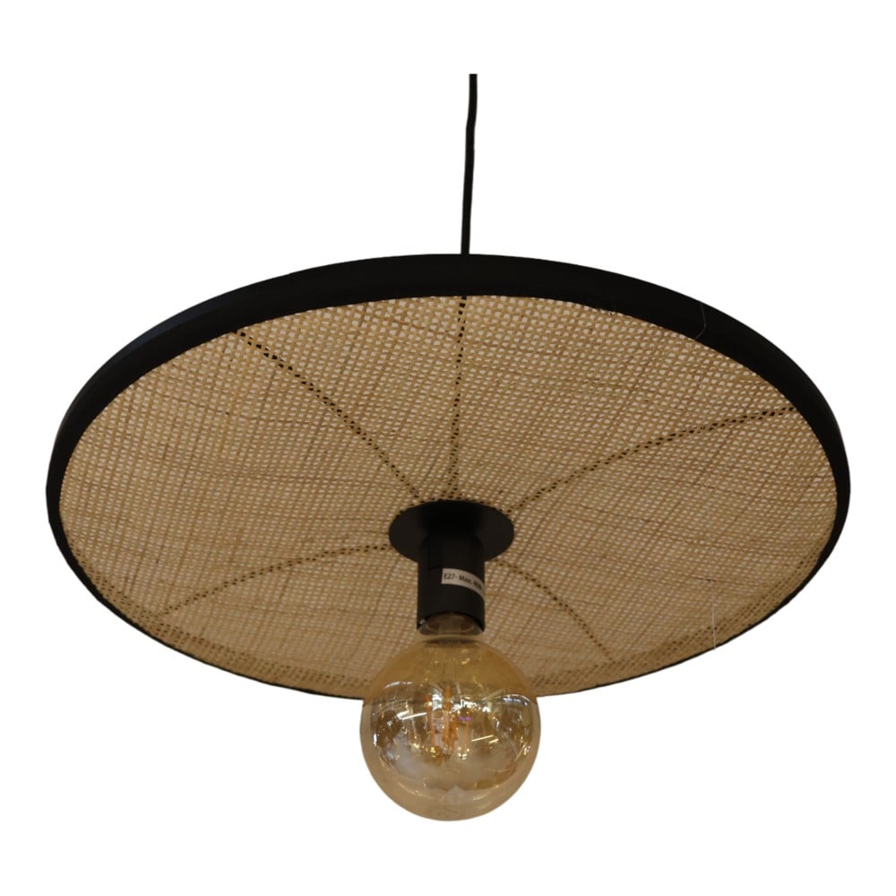 Hanging light, E27, D40 cm, H9 cm, natural material/stainless, beige/black. A natural material light gives an interesting warm light and shade effect to home interior, bars restaurants or public places, brings out natural and cozy vibe.