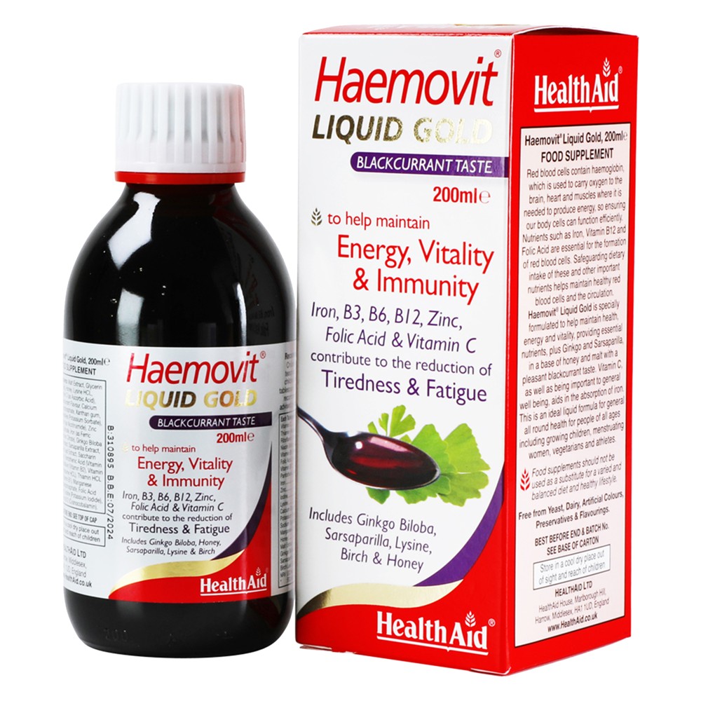 Composition: Haemovit Gold liquid formula contains Vitamin B Complex, Iron, Zinc and plant extracts of Gingko Bil