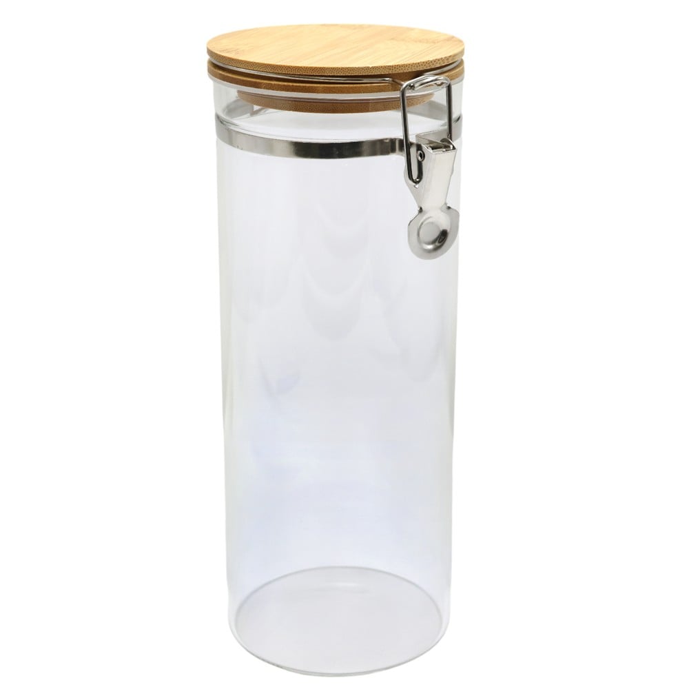 Hermetic jar with bamboo lid, glass/bamboo, transparent, H25 cm / 1.5 Lt
