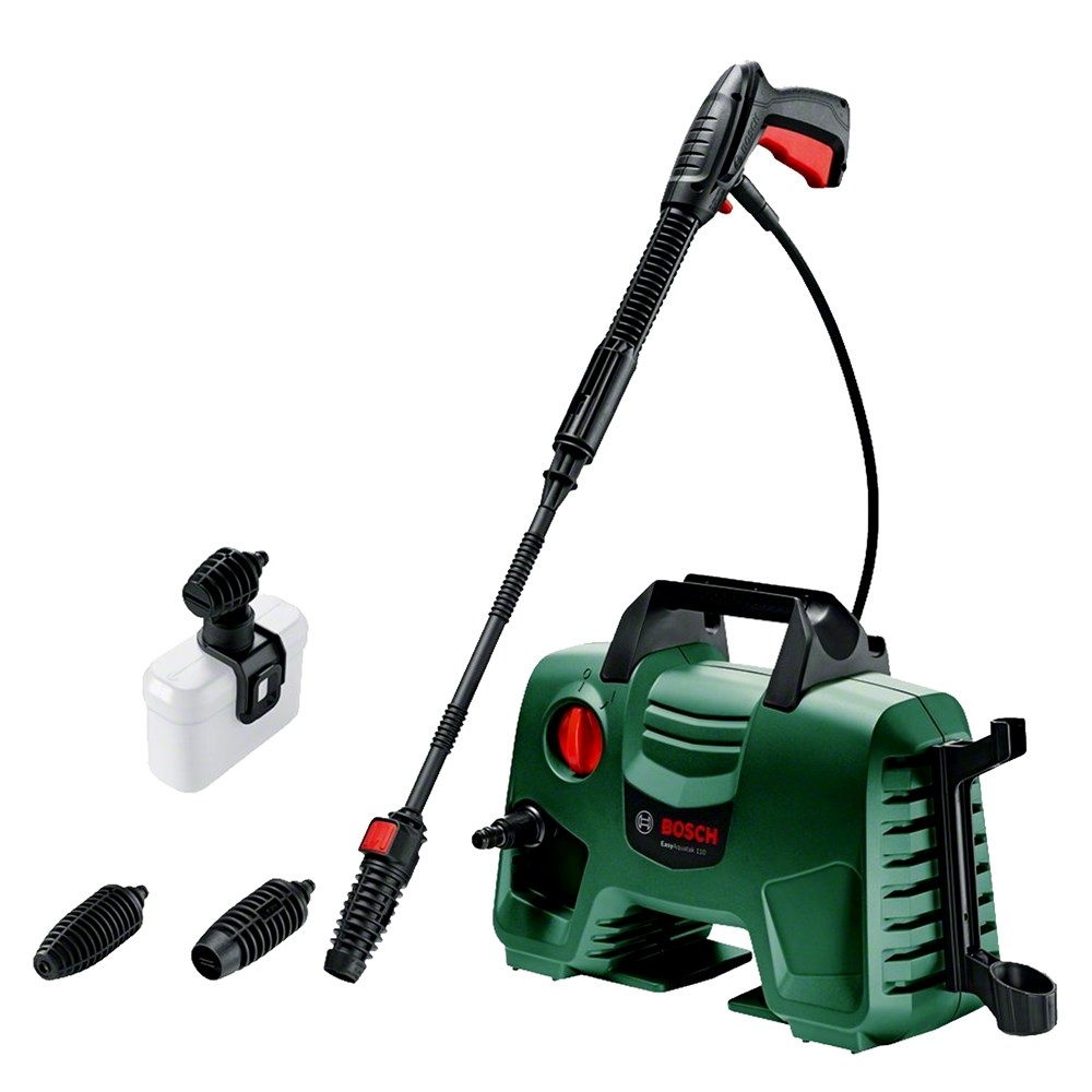 The Bosch AQT 110, 1300W, 330L/h, 110 Bar is a power pressure washer with 1500 Watts power,max pressure 110 Bar and max operating pressure 330 l/h.It has the best performance thanks to high-quality metal pump.It has a sturdy, upright design.It has handy hooks for hose, accessories and mains cable and an integrated detergent tank.