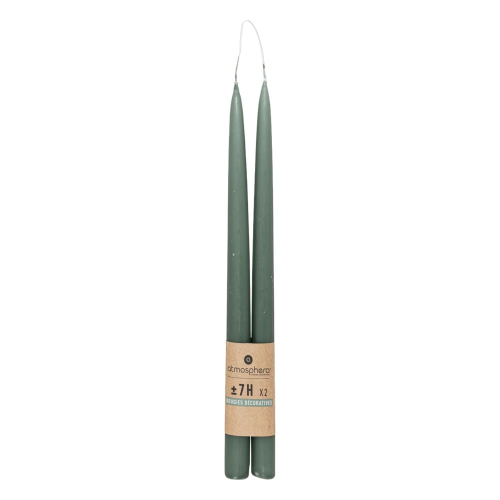 Long "Hugo" candles (packs 2 pieces), made of paraffin, green and 30 cm long, are a very nice choice to add a soft lighting and a warm atmosphere to your home. This product offers not only light but also a beautiful decorative element.