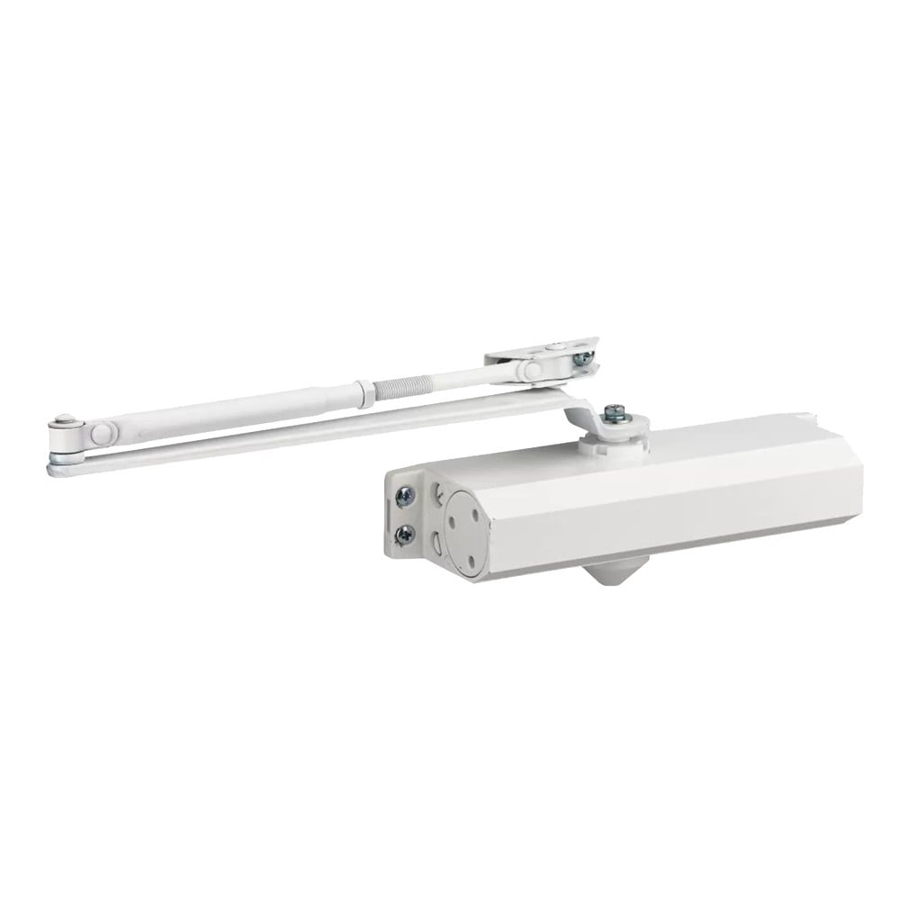 Hydraulic door closer. Can be mounted on the right or left. Adjustment of closing speed and final stop is done with a screw.