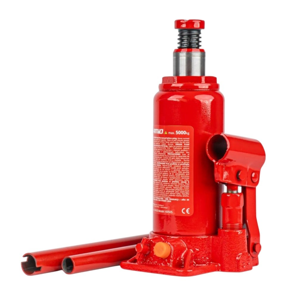 An ideal tool for lifting vehicles, machinery and other loads. Thanks to the advanced hydraulic mechanism, it ensures fast lifting of heavy loads even with minimal effort from the user. Equipped with a durable and resistant construction, it guarantees stability and safety during use and its compact design makes it easy to transport and store. Maximum lifting capacity reaches up to 5000 kg. The lifting height is approximately 195 - 380 mm. Precise height adjustment is made thanks to the screw. It is equipped with a release valve, also safety valves prevent overloading.