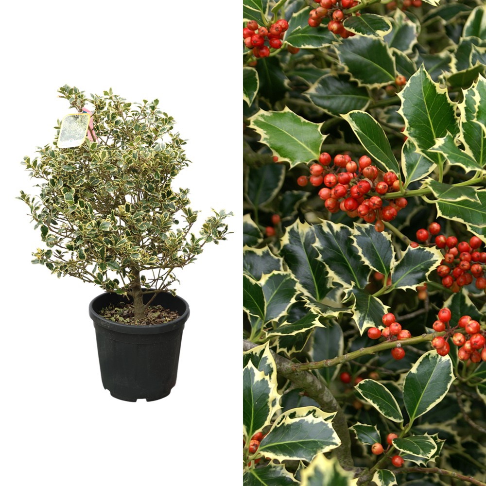 This tree, spiny, lustrous, dark green leaves with broad, creamy-white margins on dark purple stems. Contrary to expectations this slow-growing, variegated, evergreen holly. An attractive specimen tree for small, sunny gardens, particularly those in urban or coastal areas. Plants grown as free-standing specimens require minimal pruning - remove diseased or misplaced branches in spring. Trim plants grown as formal hedges in late summer. After pruning apply a well-rotted compost or manure around the base of the plant.