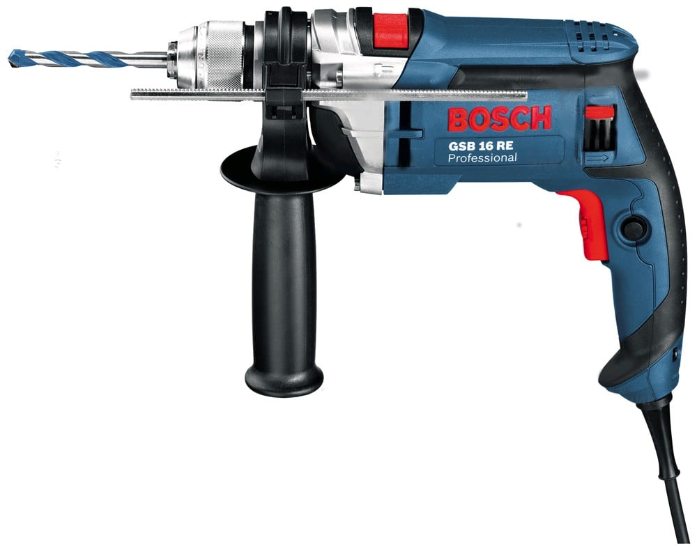 The GSB 16 RE Professional is the fastest tool in its class.It has a 750 W for the fastest work progress.Compact design for perfect handling.Sturdy metal gear housing for long lifetime.Single-sleeve keyless chuck with Auto-Lock for fast tool changes with one hand.Speed preselection with setting wheel for working in various materials.The maximum Drilling in concrete 16 mm, in wood 30 mm, in steel 13 mm and in masonry 16 mm.