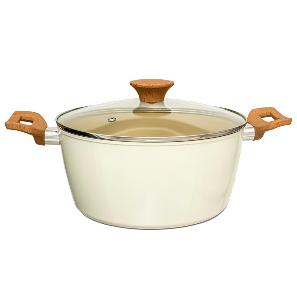 Granite induction cooktop and glass lid included. Very good and light aluminum material coated with non-stick coating ensures quality, durability and practicality of the pot. Thanks to the heat-resistant handles, you can easily cook on all types of hobs. It is recommended to use accessories that do not damage the material of the Germanitium coating, such as: wooden spoons, silicone, etc.
