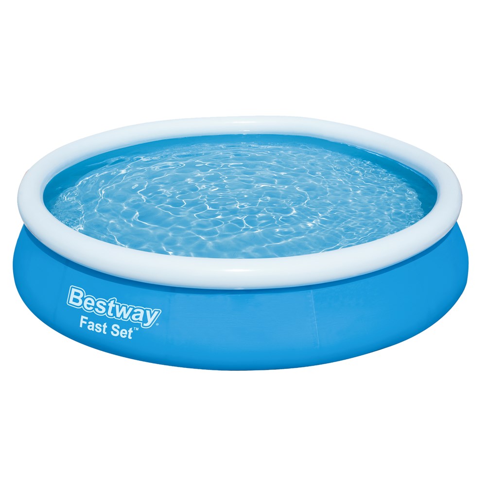 Ø3.66m x 76cmPool Set by Bestway is a great family swimming pool. It sets up in only a matter of minutes on a flat surface as only the top ring needs inflated; the body of the pool has a liner that lifts when you fill the pool with water. The set includes a 330 gallon filter pump and filter cartridge to keep the water fresh and clean. It also comes with a flow control drain valve, allowing it to be drained quickly at the end of the season. The Fast Set™ Pool is constructed of tough Tritech™ material, making it extremely durable and guarantees to keep the family swimming for years to come!