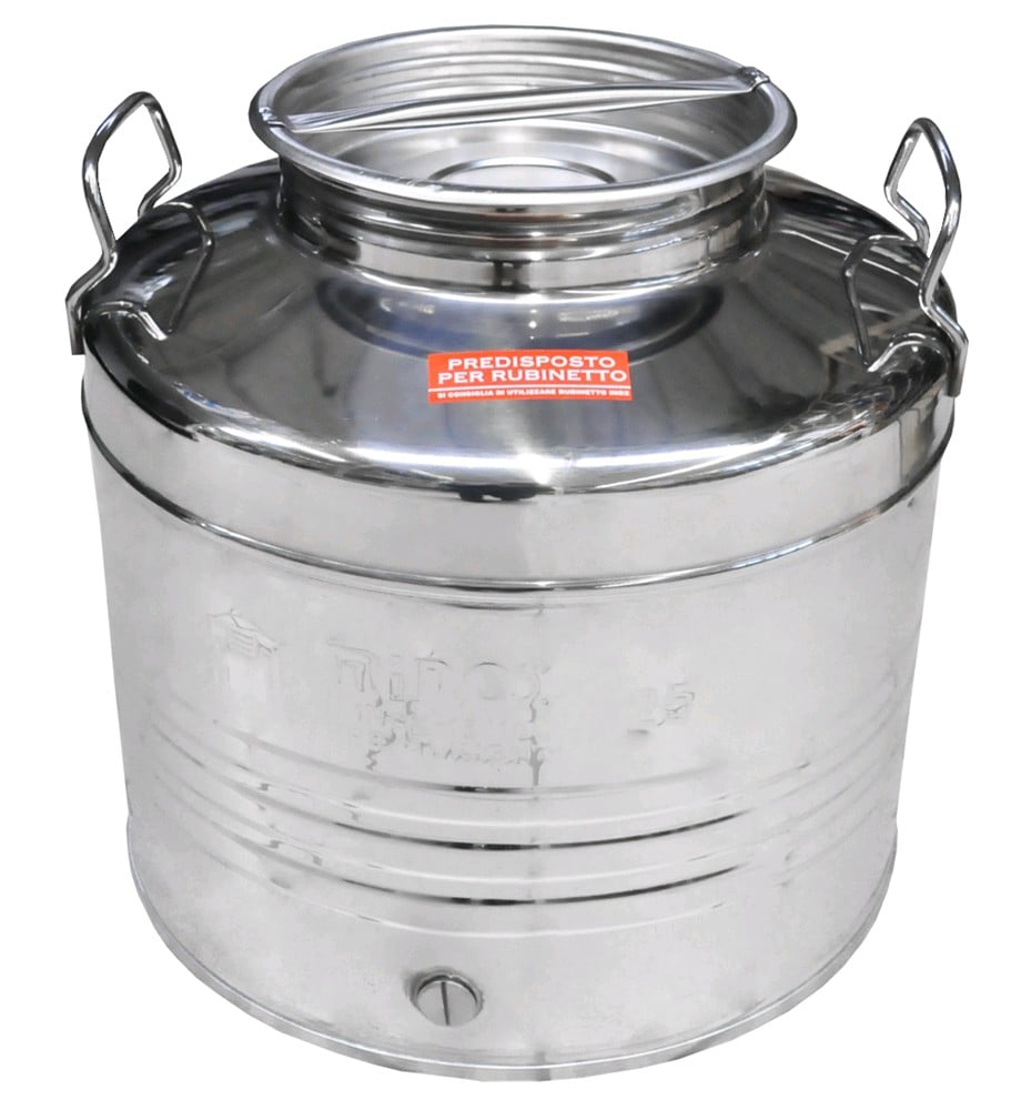 Reinforces stainless steel with reinforcement, which is many times more resistant to shocks. It is used for storing food juices, such as oil, wine, brandy, etc. Preserves nutritional value and is hygienically clean.