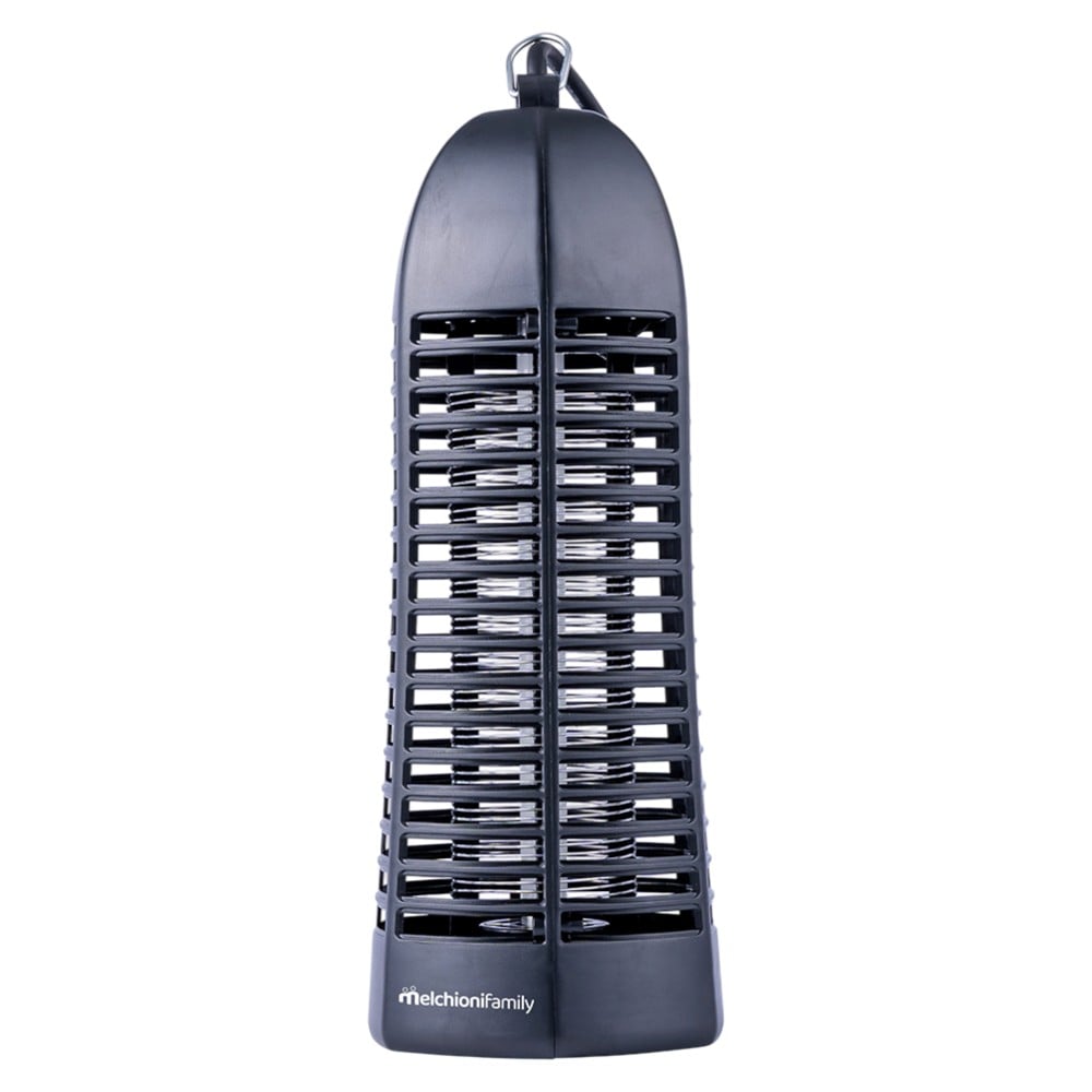 Insect killer Melchioni 10 W. UVA lamp. Voltage: 1000V. Lifetime: 8000 hours. Removable collection tray. Application: internal. Coverage: 30m². Power consumption: 10W. Power supply: 220 – 240 V AC 50 Hz.