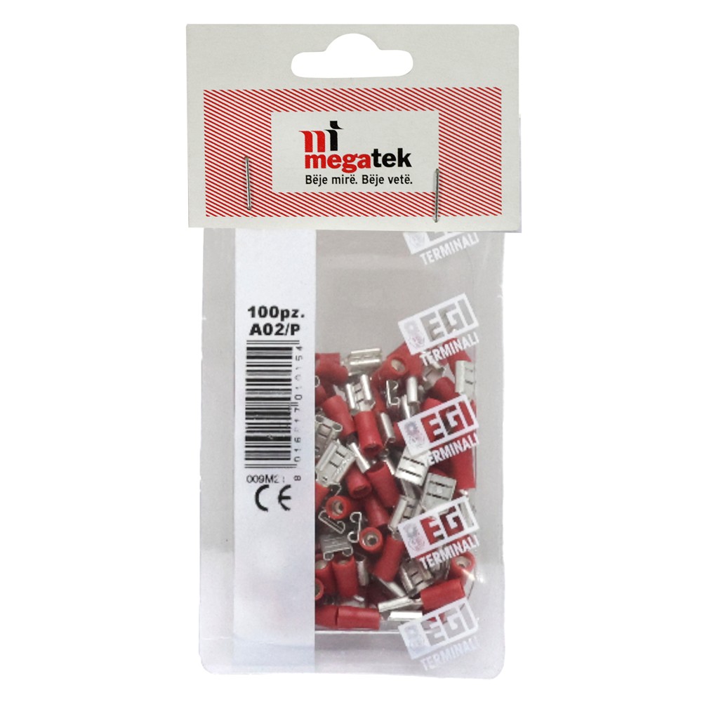 Insulated terminal, F 1.5/6.3mm². The terminals enable the joining of two or more conductors, with a solid connection and perfect isolation.