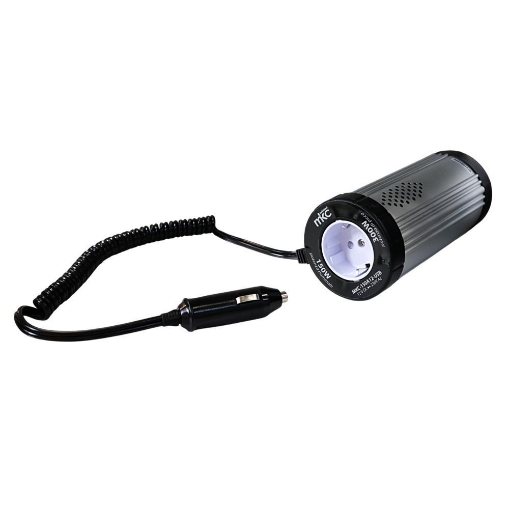 High reliability model soft start input voltage 12vdc output voltage 220-240vac with usb5vdc output 500ma continuous power 150w peak power 300w modified sinusoidal waveform protection from over-loads short-circuit protection measurements 166 * 72 + 68mm weight: 0.45 kg use in votovoltaic systems, boats, campers, vans, mountain huts, shelters for TV, notebooks, netbooks, smartphone phones, battery chargers, tools, etc.