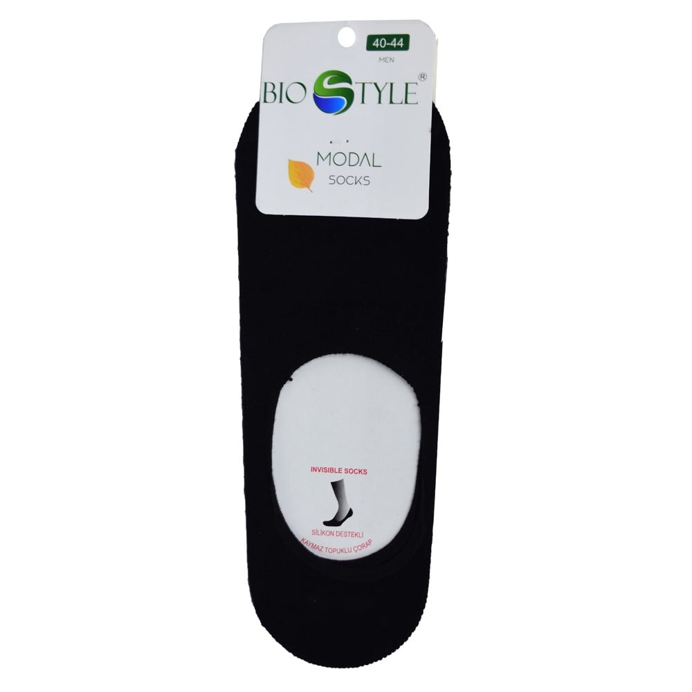 Invisible socks for men, made of 77% modal fiber, 18% polyamide and 3% elastane material, size 40-44, in different colors. The constituent material has hypoallergenic and anti-bacterial properties, it absorbs excess moisture, regulates skin temperature, stimulates optimal blood circulation, prevents unpleasant odors and prevents the formation of fungal infections or other skin conditions, such are eczema and dermatitis, on the skin of the feet. This product is gentle on the skin, it does not cause irritation and it is suitable for use on sensitive skin.