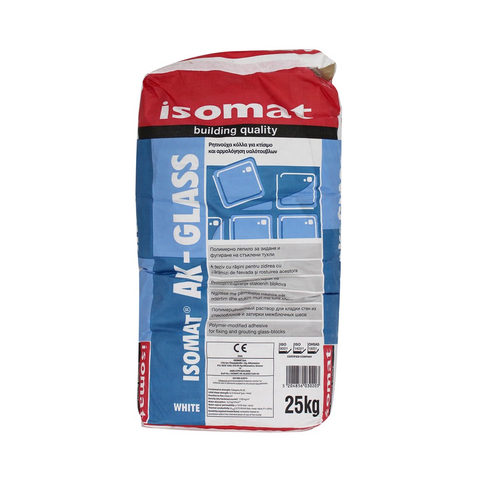 ISOMAT AK-GLASS is a polymer modified cement-based mortar for fixing and pointing glass-blocks. It features excellent workability, superior adhesion on glass-blocks and resistance to abrasion and moisture. It is certified with the CE marking, according to EN 998-2, as a designed general purpose masonry mortar, for external use, in elements subject to structural requirements. Certificate number: 0906-CPR-02412008. ISOMAT AK-GLASS is used for fixing and pointing glass-blocks.
