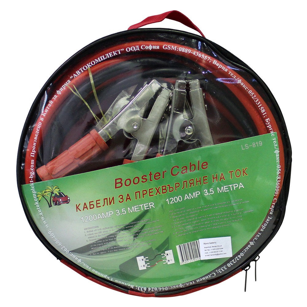 Booster cables 1200A 3.5m 100% copper, more needed to be had in your car. Grounding cable serves for the ignition of the car to the other side of a car when the car battery is discharged. Thanks yarns 100% copper makes an excellent trasmetin of current.