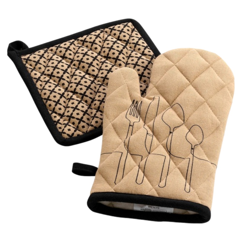 The kitchen handle and holder is an important accessory for any kitchen environment. These are accessories that serve to catch any hot kitchen utensil ready for cooking. The product is made from recycled cotton. With a combination of beige and black colors, they present an elegant look suitable for any kitchen. Their suitable size, 18x28 cm handle and 20x20 cm holder. Gloves and napkins are not only functional, but also aesthetic, adding a beautiful and useful touch to your cooking environment.