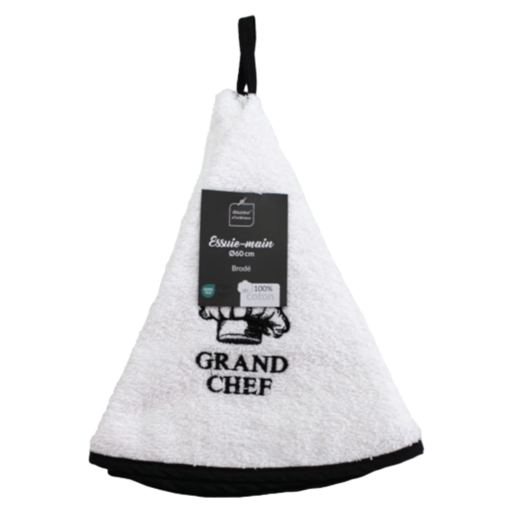 Kitchen hand towel is very important to wipe and clean your hands while cooking. This towel, with a circular shape and a diameter of 60 cm, offers enough surface to wipe hands easily. Made in white, it presents a clean and attractive look. Its size and shape make it suitable for the kitchen.
