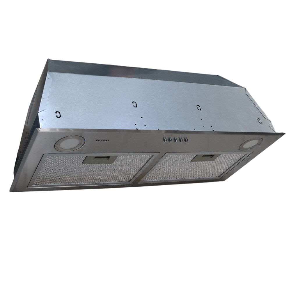 The Fuego kitchen hood is a build-in hood. The aspirator has a suction power of 350 m³/h and a noise level of 60 db(A). The aspirator is equipped with 2x1.5W LED lighting. It is also equipped with an aluminum grease filter.